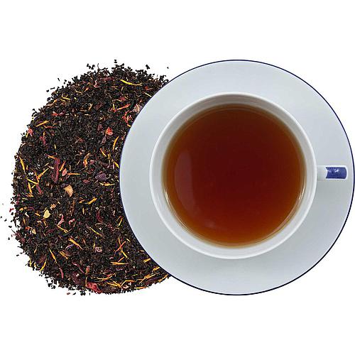 Aromatisierte ostfriesische Mischung mit fruchtigem Beerenpotpourri-Geschmack aus der Region mit Hibiscusblüten, Saflorblüten und Rosenblüten
