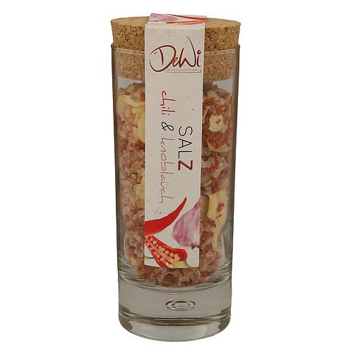 Knoblauch-Chili Salz schmeckt durch seinen deftigen und pikanten Geschmack besonders gut zu Fleisch und Fischgerichten.