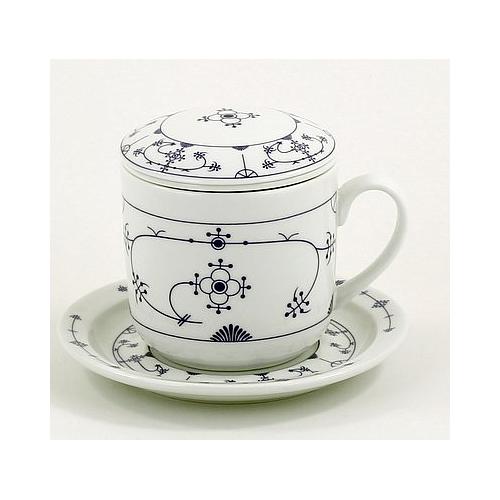 Kräuterteetasse, 4-tlg. mit Deckel, Siebeinsatz und Unterteller, aus Porzellan