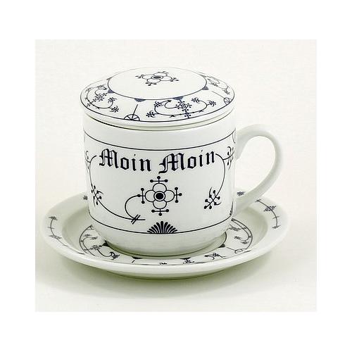 Kräuterteetasse, 4-tlg. mit Deckel, Siebeinsatz und Unterteller, aus Porzellan