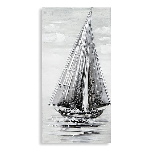 Bild "Regatta" Leinwand weiß/grau/silberfarben mit Aluminium-Applikationen, zwei Boote