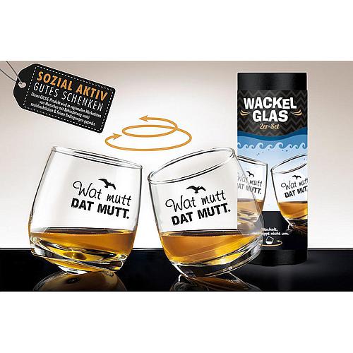 2er Set Wackelglas "Der Klügere kippt nach" Füllmenge: ca. 200 ml spülmaschinenfest Zylinderbox mit Banderole: H 23 cm D 8,3cm