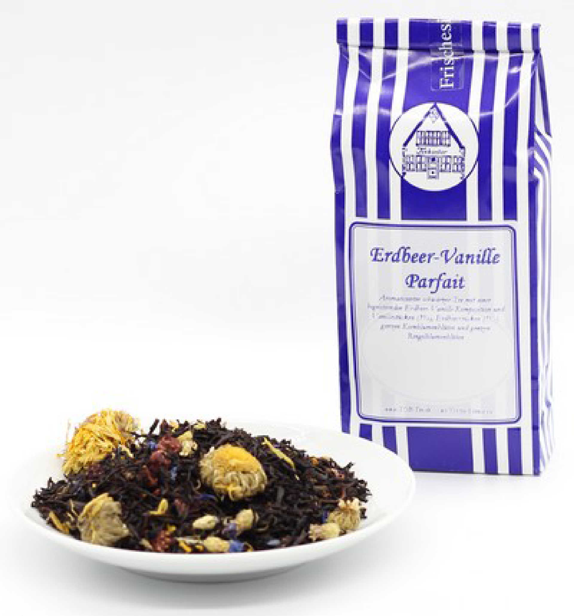 Cremig-süßer Schwarztee mit echter Vanille & Erdbeeren – ein Dessert in der Tasse.