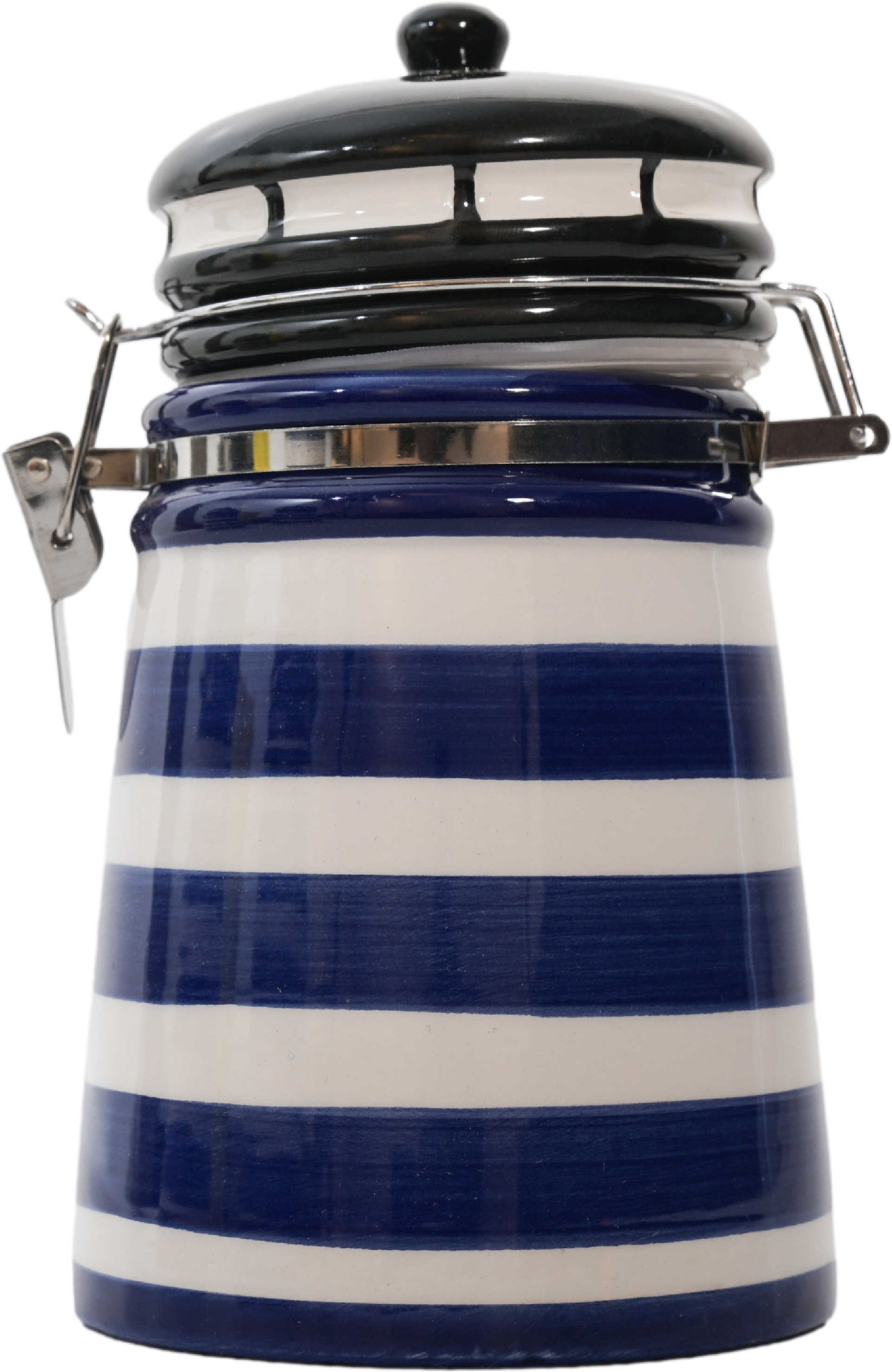 Keramik-Leuchtturmvorratsdose ca. 13x8,5cm blau/weiß 125g