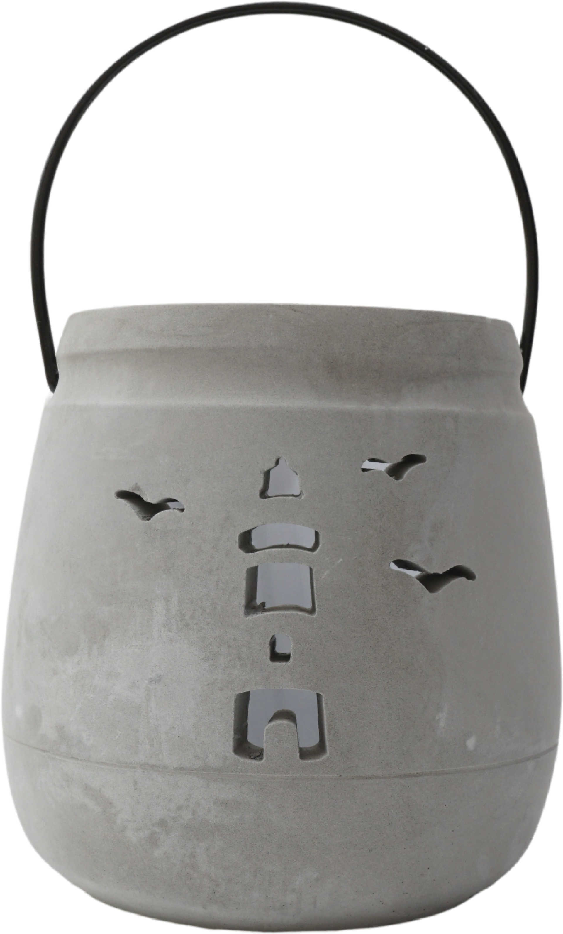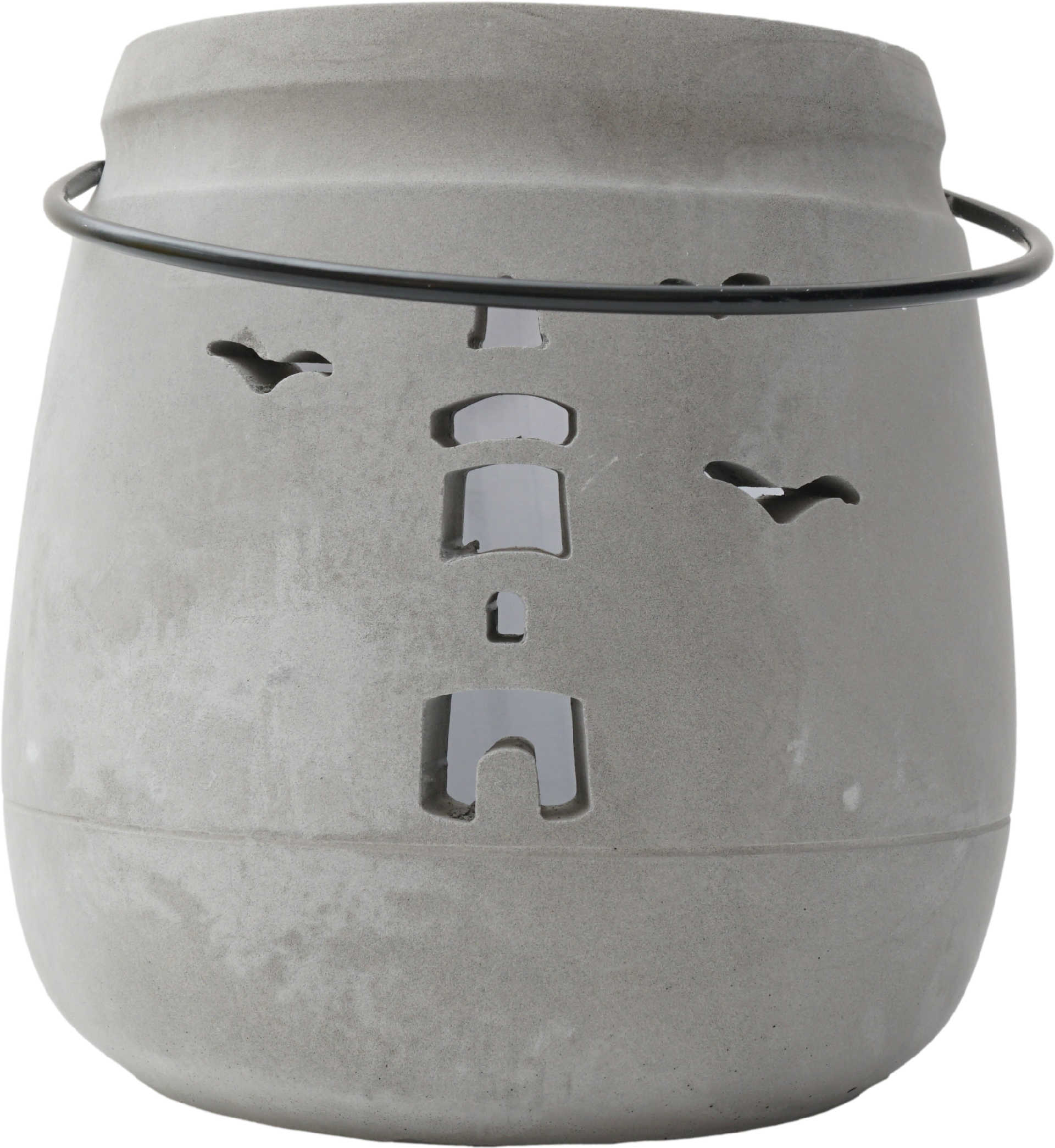 Beton Windlichter Leuchtturm/Möwen 12 cm/h grau