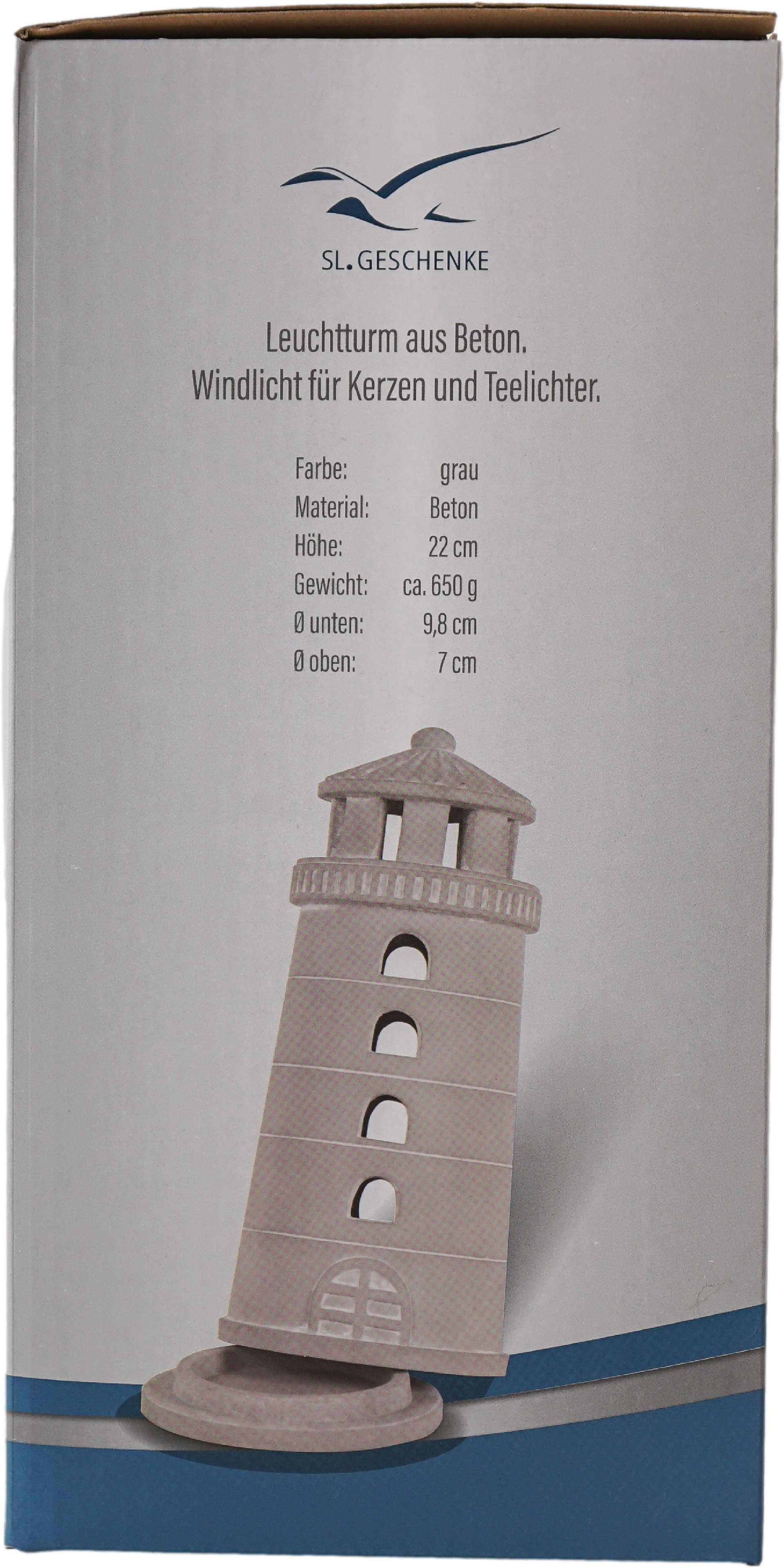 Beton Leuchturm Teelichthalter ca. 22 cm/h grau