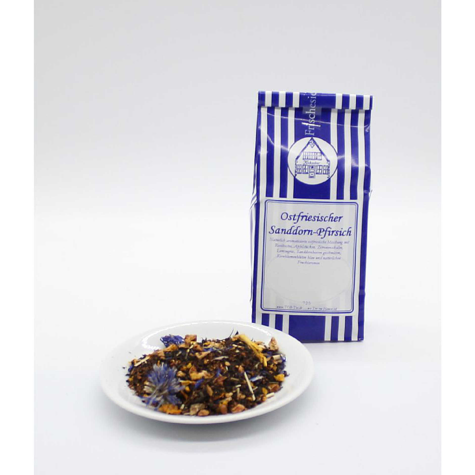 Natürlich aromatisierte ostfriesische Mischung mit Rooibostee, Apfelstücken, Zitronenschalen, Lemongras, Sanddornbeeren geschnitten, Kornblumenblüten blau und natürlichen Fruchtaromen