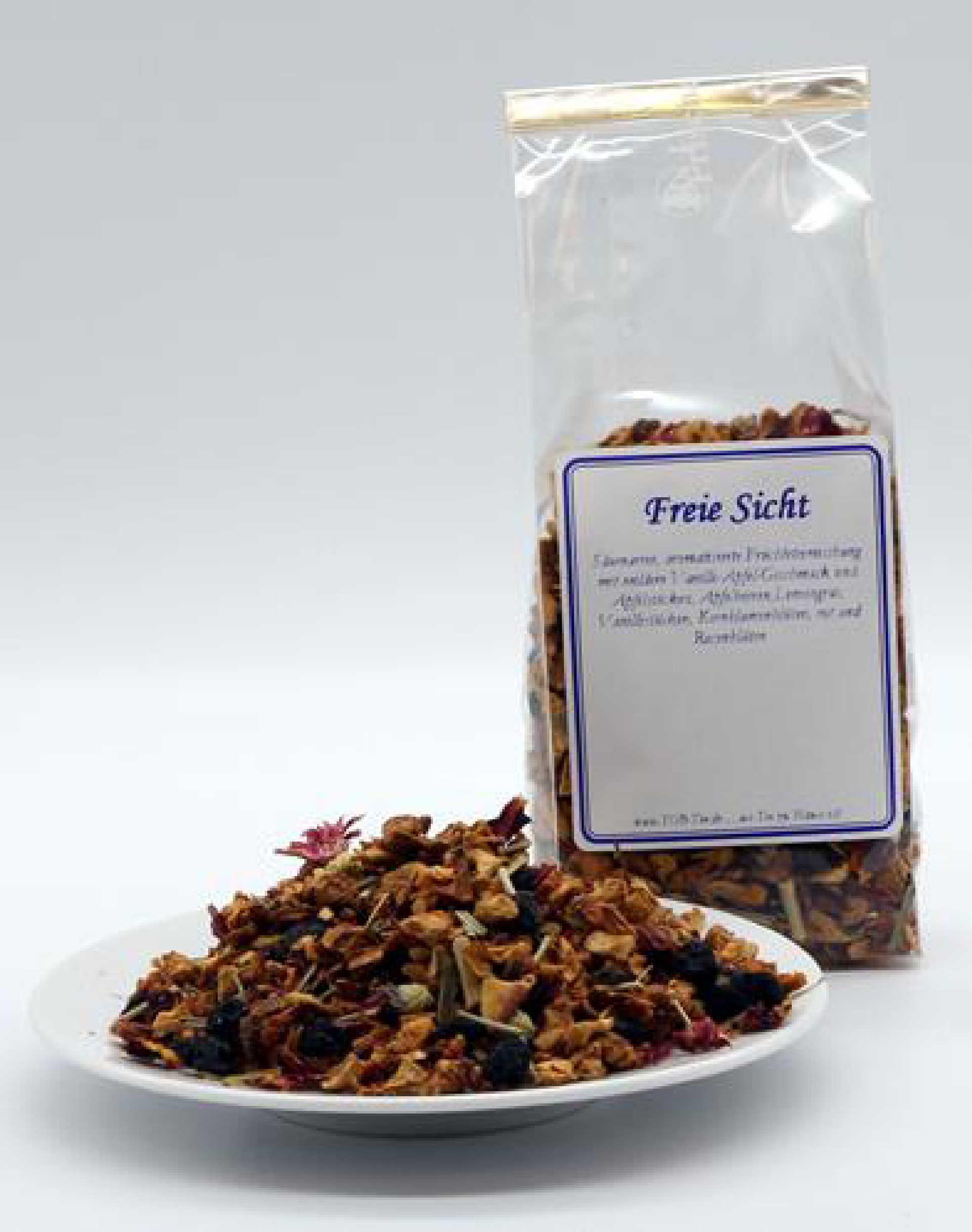 Säurearme, aromatisierte Früchteteemischung mit mildem Vanille-Apfel-Geschmack und Apfelstücken, Apfelbeeren,Lemongras, Vanillestücken, Kornblumenblüten, rot und Rosenblüten