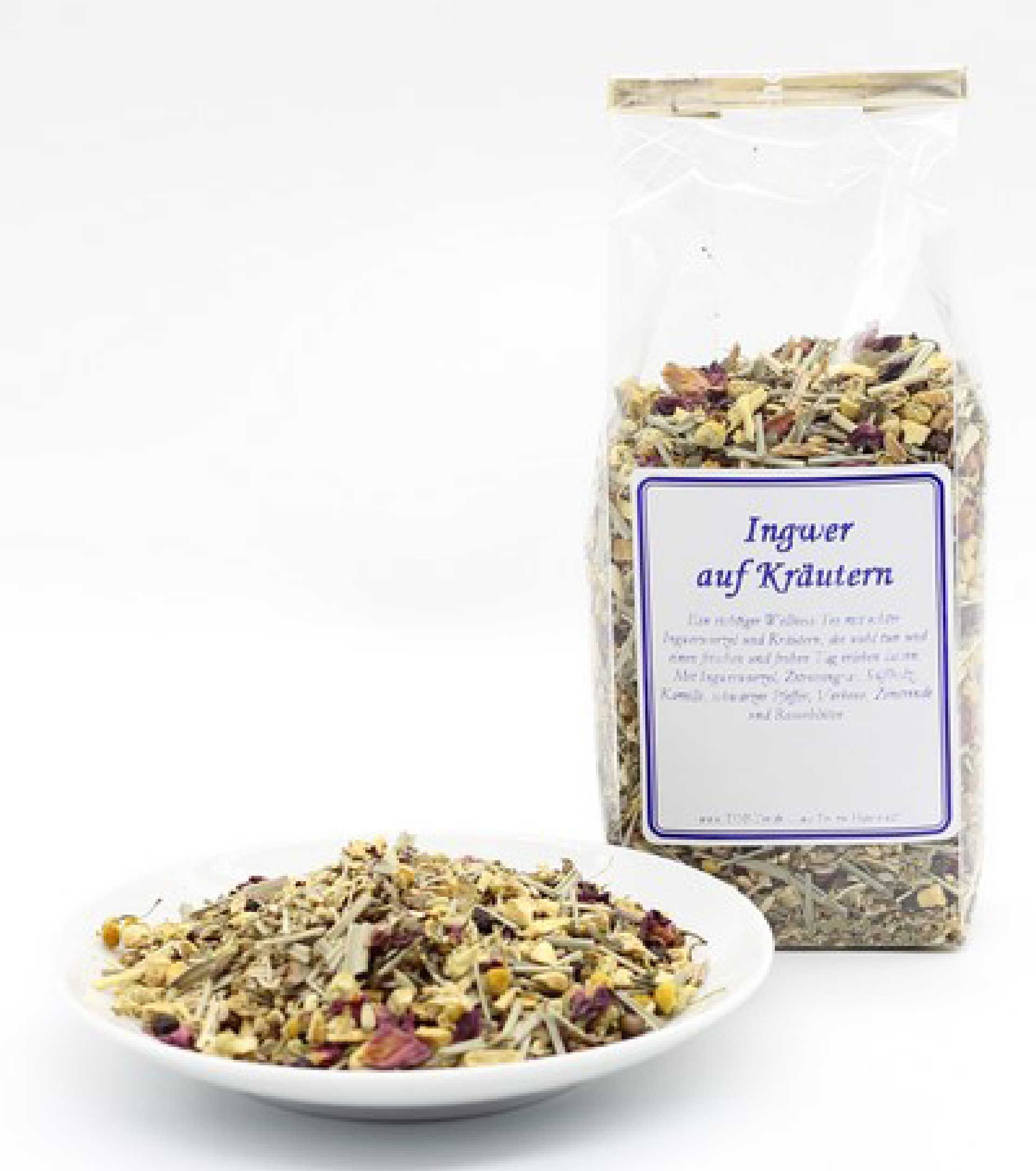 Wellness-Tee mit Ingwerwurzel, Kräutern und Gewürzen – erfrischend und belebend.